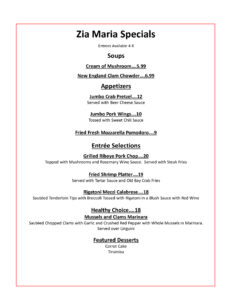 The next time you are craving a delicious Italian (or American) meal or are looking to meet up with friends in a friendly atmosphere, check out Zia Maria Italian Eatery & Pub. Zia’s is a favorite spot for food, drinks, outdoor dining, and live entertainment! Stop in on Saturday nights to get your boogie on with our weekly DJ. or live band! Zia’s provides plenty of free parking and free wi-fi service.