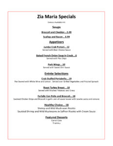 For over a decade Zia Maria’s has been serving the community authentic Italian food. Our extensive menu offers a variety of dishes sure to please any palate.